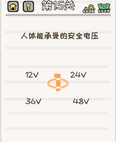 人体能承受的安全电压是多少是《挑战小学生》第15关的问题,很多网友不知道答案是什么,下面小编给大家带来挑战小学生第15关攻略。