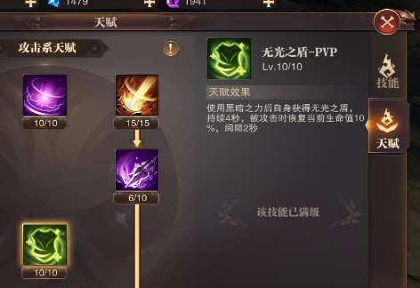 天光之盾,加强黑暗之力技能,释放黑暗之力会获得光之盾,被攻击回血,黑暗之力CD短,伤害不错,这个要点满