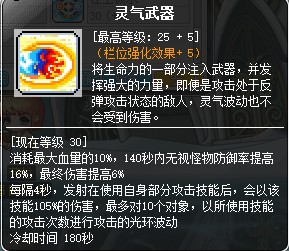 需要说明的是,灵气武器每升一级持续时间多一秒,而钢铁之躯每升5级多一秒。