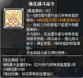 对于1-3转的技能则是提升了没加到满级的部分但是不能突破最高等级,不过随着韩服加点优化,1-3转大家都能点满,所以战斗命令的作用就是用来使自己的4转技能突破1级等级。下图是使用命令前后的对比