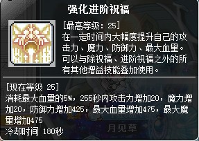 这3个我就放到一起说了,3个BUFF有个共通点,升级只加持续时间和被动效果(被动效果5级升一次),所以前期不需要急着升级,而1级的持续时间就有183秒,可以做到无缝衔接。