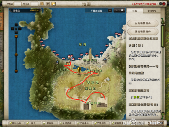 2、对一次去无极岛的话,请从烟雨庄坐船过去,后面记得设T点吖