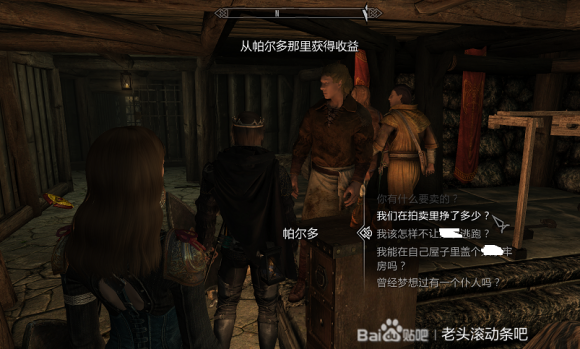 如果你不想买现成的,你依然可以从天际的任何角落抓捕目标,把他带到不安的猎人这里,从老板那里买到拍卖项链,然后让目标穿上,穿上后让他在这里呆一阵子,这时候酒馆守卫就会把它带下去,这样凑够三个你也可以和老板对话让他举办拍卖会,别人就会买走你的货物。但是野外的货物初始属性都很低,一般底价就两三百金,便宜的很。你可以先买几个老板店里自己刷出来的,然后把你野外捕捉的放到家里,他们会帮你培养这些野外的人,提高他们的属性值,提高后你再带回来拍卖掉,这时候价格就高了。