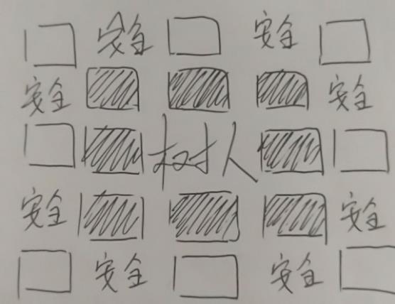 下面放一下图示。黑色位置是一个高防人员任意可以贴上去的位置,白色格子不要站,那里也会打得到,标注安全的格子,长柄斧一起招呼吧!