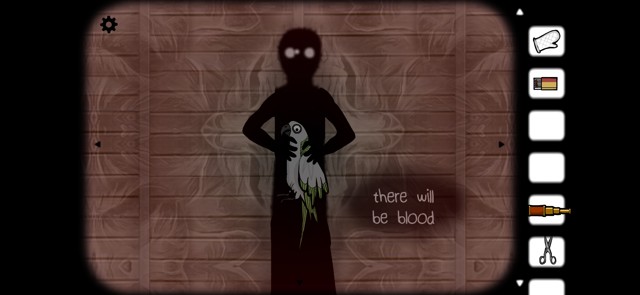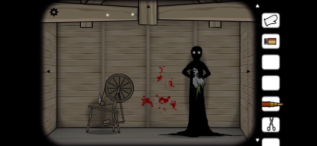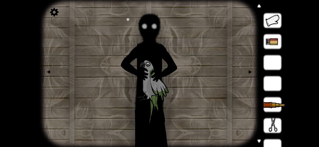 最后在纺织机旁边,我们找到了化身黑影的女人。(劳拉)黑影手里死死的抓着哈维,鹦鹉发出阵阵惨叫。