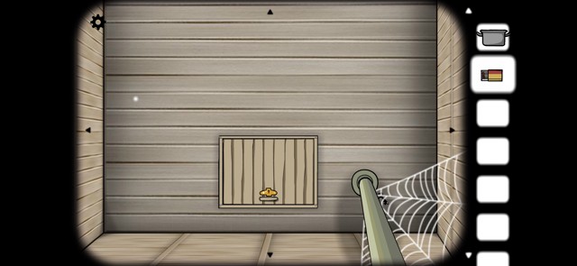 抬头看一眼头顶,发现蛛网后边藏着一把钥匙。用火柴烧掉蛛网,拿到钥匙。