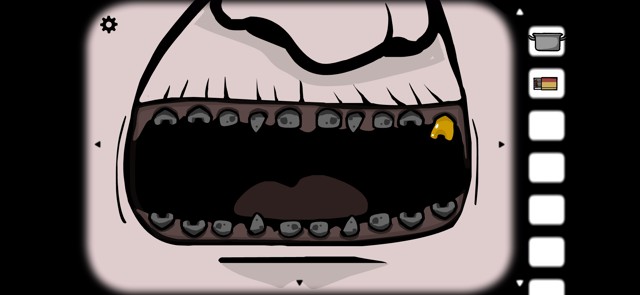 这个小游戏其实就是一个简单的加减运算。比如上排牙齿点击4和6,那么就要点击下排代表10的牙齿,使等式成立 。(并且每次等式最多只可以按下三颗牙齿,等式成立按下的牙齿就会变黑,误操作点击金色牙齿即可复原。)