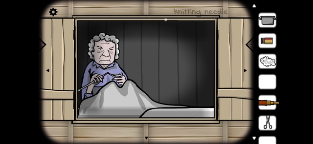 先别介着离开,来到老奶奶这边。用剪刀剪下老奶奶的头发,顺便把针给她。