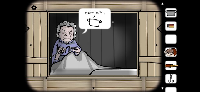 之后来到老奶奶这里,将毛线交给她。对方说想喝热牛奶。