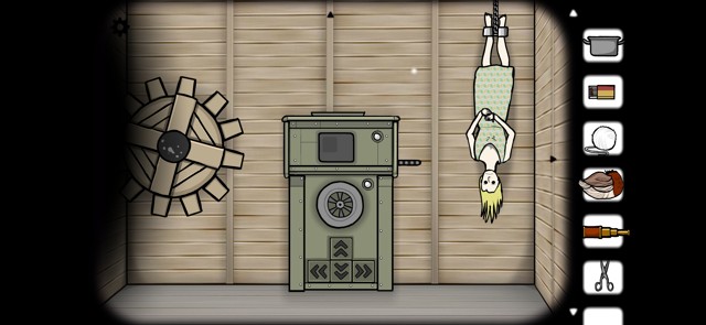 来到起居室,先控制机器,将女人的脑袋塞到机器中。