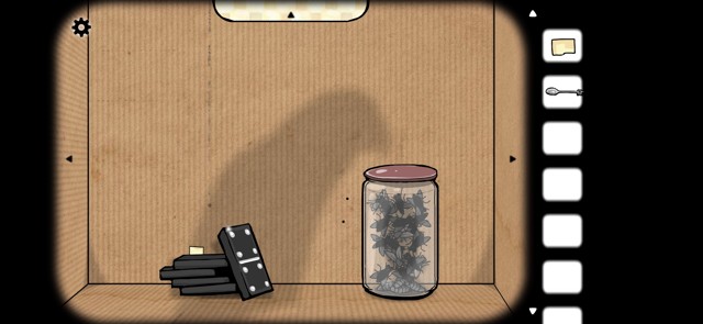 切换场景,发现了一小堆牌九以及一个装满虫子的玻璃瓶。在牌九上方发现一张纸条碎片,然后自己调查一下牌九。