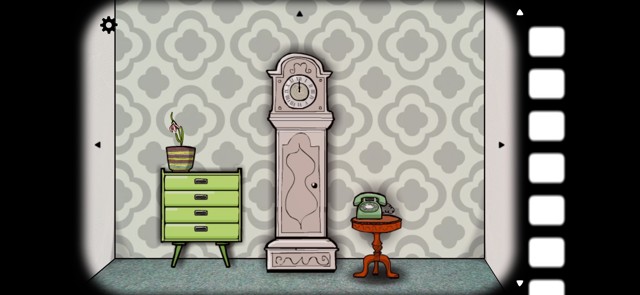 观察一下周围,一盆花摆在柜子上,中间摆放着时钟,椅子上放着一台电话。
