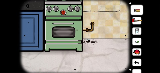 来到厨房,壁炉旁边的管到处,已经长出了黑色的蘑菇,将其摘下。