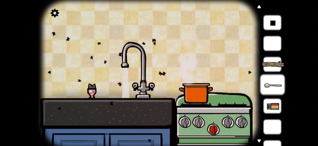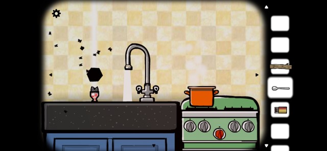 来到厨房,将锅接水后放在煤气灶上,打开白色开关,用火柴点燃。之后将哈维的蛋丢进锅中煮, 一阵黑烟后蛋熟了。放在一边的固蛋器上用汤匙敲碎蛋壳,从里面飞出了大量黑色的飞蛾。