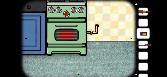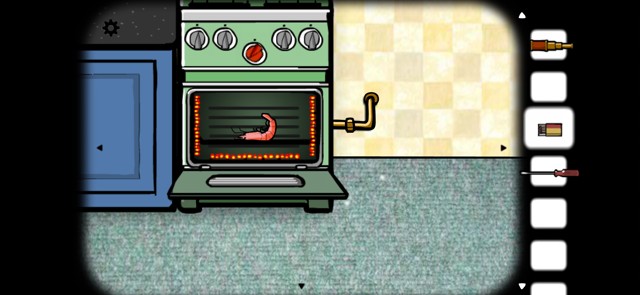 来到厨房这边,先用螺丝刀将柜门撬开,将虾放进炉子里烤,打开红色的煤气开关用火柴点燃一下。(为啥烤一只虾要用这么大的炉子?Σ(ŎдŎ|||)ノノ)