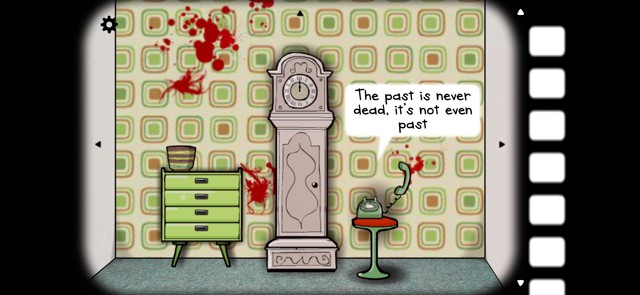 先接听一下电话,“过去并未消逝,甚至并未过去”(这句话出自美国作家威廉·福克纳的戏剧作品《Requiem for a fun》)同时房间里到处都是血迹。