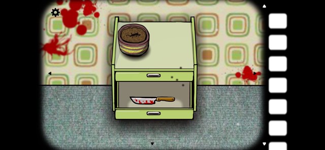 在柜子的第三个抽屉里,得到一把血迹斑斑的刀。