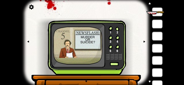 去看一下板子上的提示:“我觉得我会做一些很糟糕的事情”板子的右侧还有一块碎片。打开电视(下面长方形的开关),点击到三频道的时候,屏幕里出现了清晰的图像。接下来根据图像的提示按对应的频道即可。(3-6-1-2-4-5-3-2-5-4)