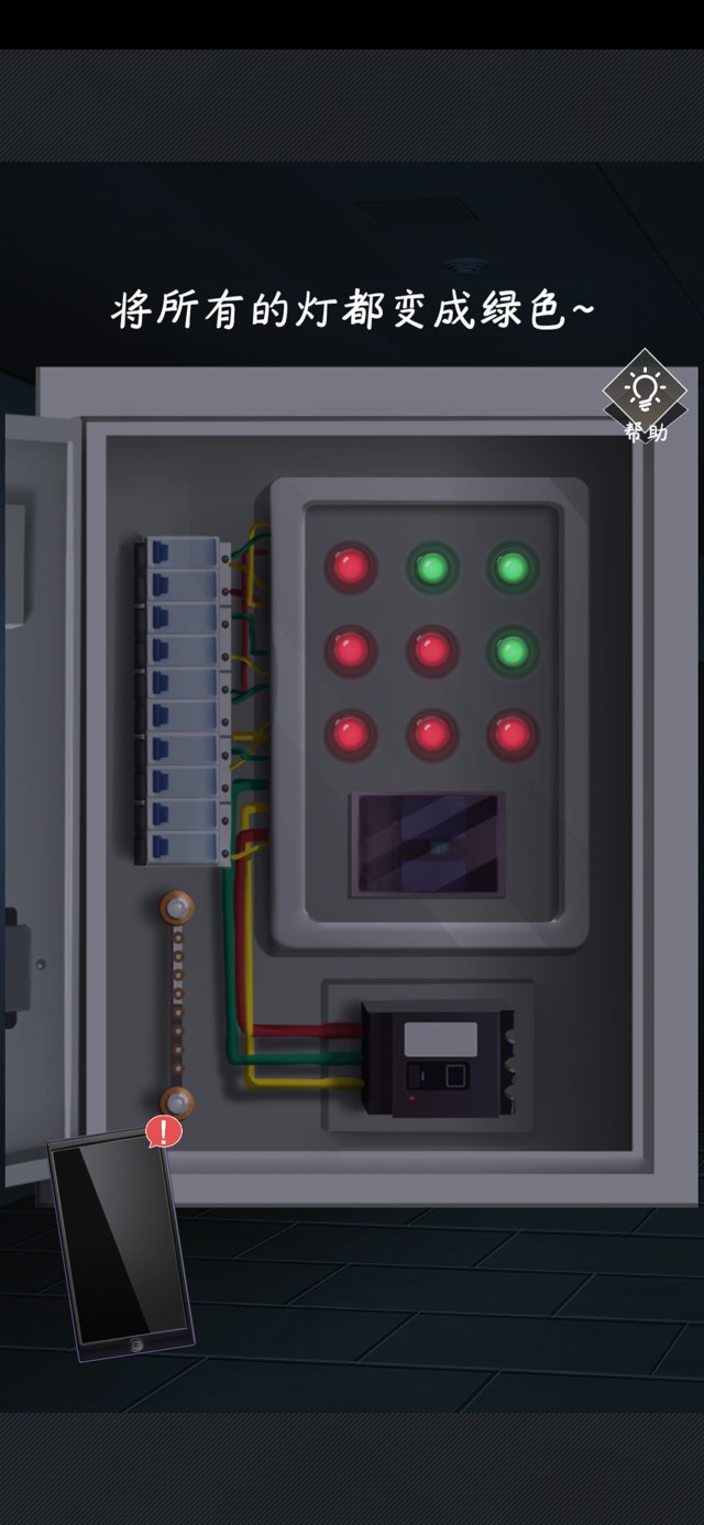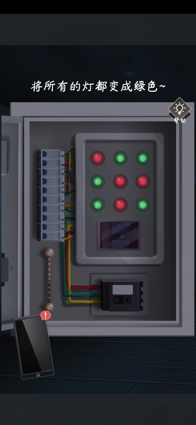 出门后一片漆黑,先不着急到天台,先来到楼梯里恢复电路。(点击7号位,9号位,5号位,1号位)