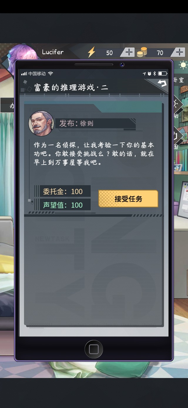 首先在手机的委托里接取富豪徐则的第二个委托。想要触发剧情,必须在早晨来到办公室。如果时间不对的,可以到卧室里打发时间。