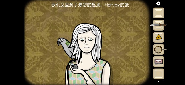 回到窗户这边,拿到鸟食,喂给哈维后哈维下了一颗蛋。
