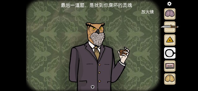 大光头说自己无法思考(就是没有脑子的意思)用刀划开他的脑子,将三个时期的脑子给他装上,出现了三个任务,和他们对话后得到三个方块。