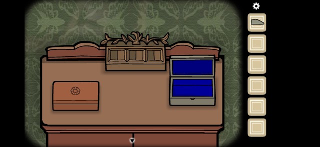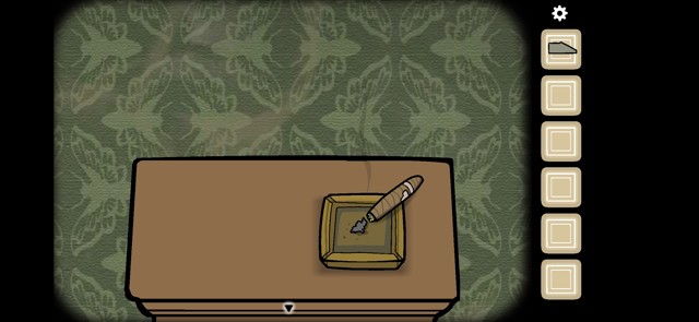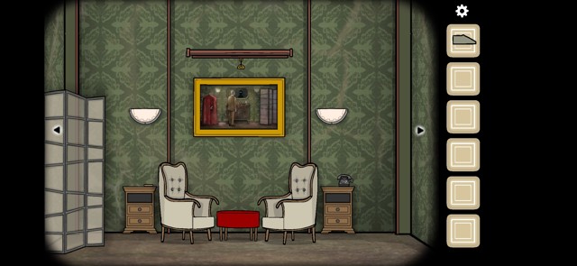 三号场景变化比较明显,沙发变成了对坐式的,中间还放了一张桌子。墙上的画也换成了另一副,画着Dale在镜子里看到了小黑。