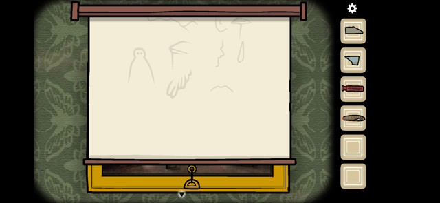 画上面的幕布可以拉下来,上面的图案变成了一些用笔画出的轮廓。