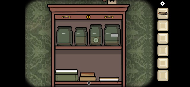 上面的架子上有四个瓶子,其中一个瓶子里泡着一只眼睛,不用着急把它取出来。
