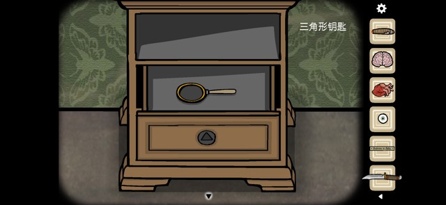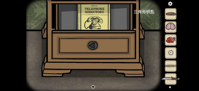 用三角钥匙打开上锁的抽屉,发现电话黄页以及放大镜,将放大镜拿走。