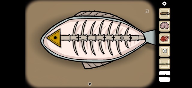 按照鱼骨头上的符号对鱼骨进行重新排列,最后得到三角钥匙。