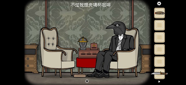 乌鸦先生对于Dale选择它做咨询师表示感谢,但在为其做心理咨询前想先喝杯咖啡。