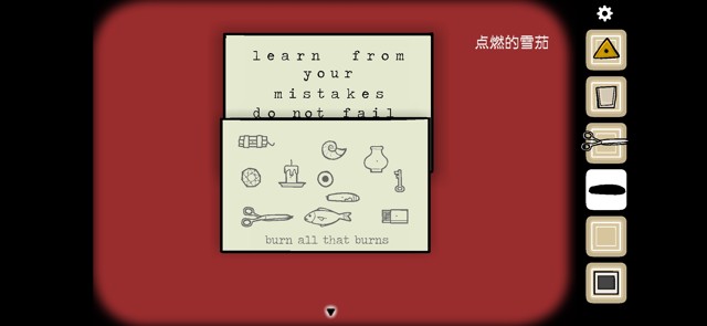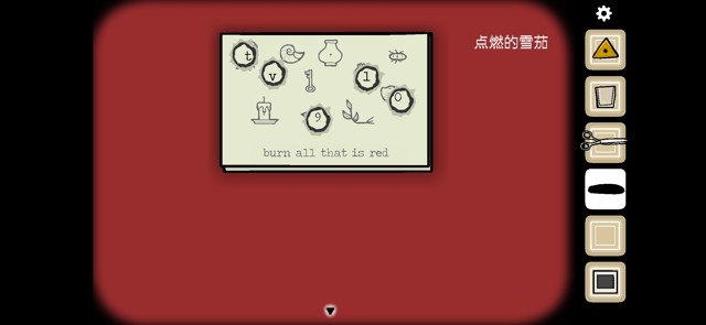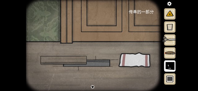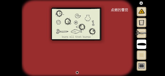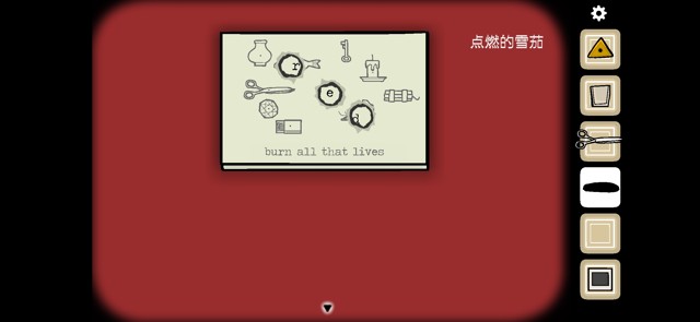 将碎块与完整的宣传单重合,得到“b-u-r-n”信息,去打字机那边将其打出来。打字机打出一张纸条,沿虚线剪开。按照提示用雪茄烫出洞得到信息。