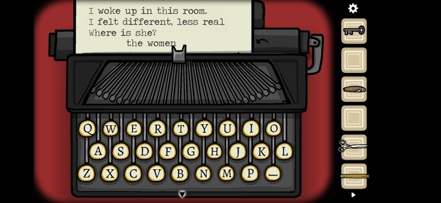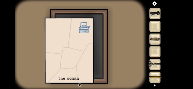 照片复原后,翻转到背面。上面的信息提示我们到打字机那输入“the woman”