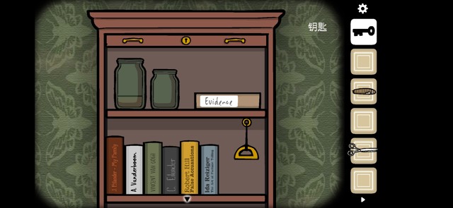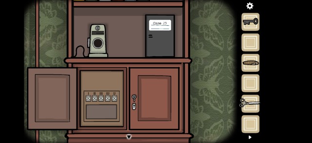打开①号场景柜子上面的百叶帘。发现一台投影机和一个记录23号案件的档案本,原来之前完好无损的插座是和投影机相连的。