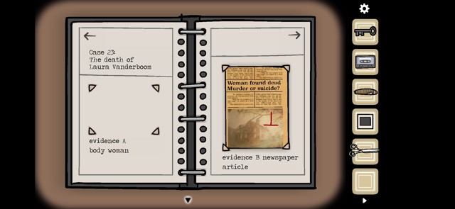 打开档案本,发现与23号案件相关的五个证据处,都是空白的,应该需要我们去补全。