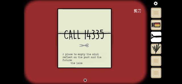 将“the lake”输入打字机,打出一张纸条。将纸条剪开后拼接,得到信息“打电话至14335”