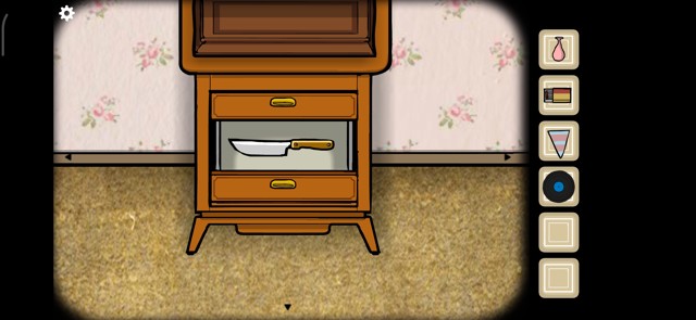 在唱片机下面的第二个抽屉里发现一把刀,正好可以用来切蛋糕。