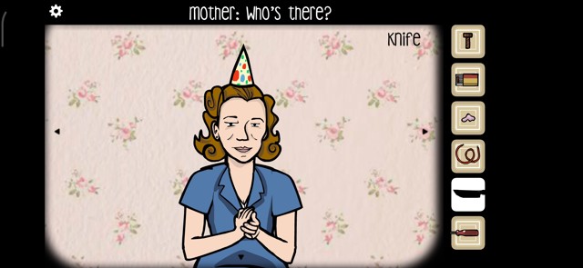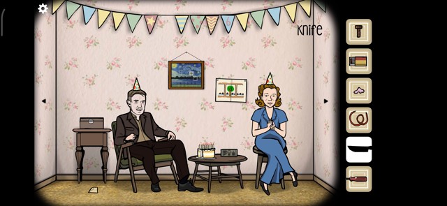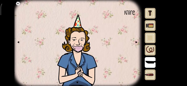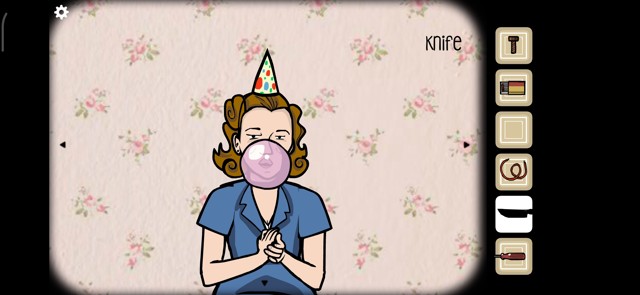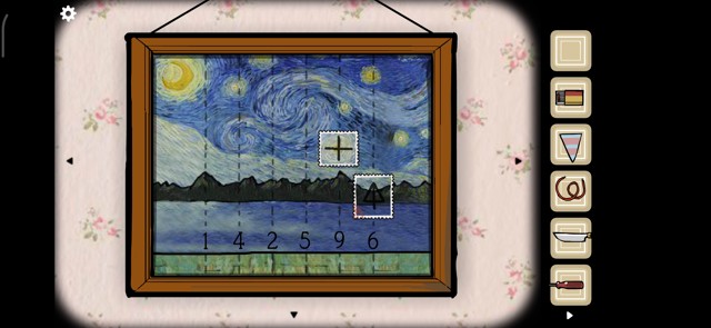 来到厨房这边将三面旗子挂在绳子上,之后点击一下。然后绳子从右边断开,带下来一个螺母。