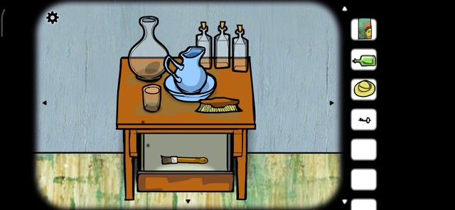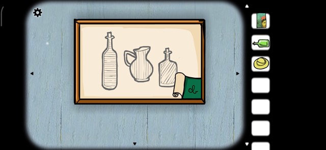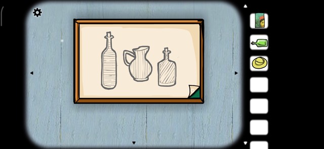 在墙上观察画了三个瓶子的画,应该是有某种意义的,但现在并不清楚。撕开画的右下角,发现对应绿色的符号。