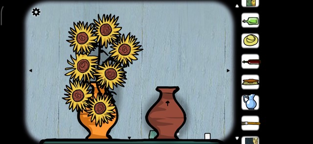 复原后多次点击画像,画里的人物在挑眉后,脑袋上长出了一朵向日葵,将其摘下。