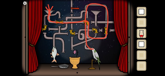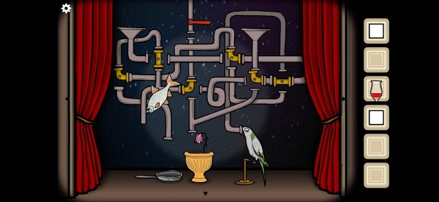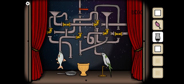 第三幕:鱼和鹦鹉幕布拉开,是杂乱的管道以及四件物品。