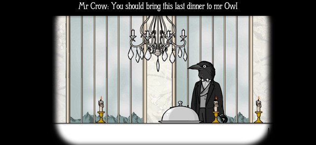 晚餐时间,没有客人了。乌鸦先生让我把菜端给老板——猫头鹰。
