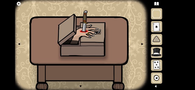 用刀定住盒子里伸出的手,拿走金戒指。