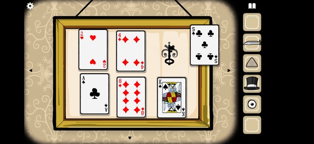 根据之前的提示,用扑克牌盖住对应的符号。最后在5号牌后找到一把钥匙。