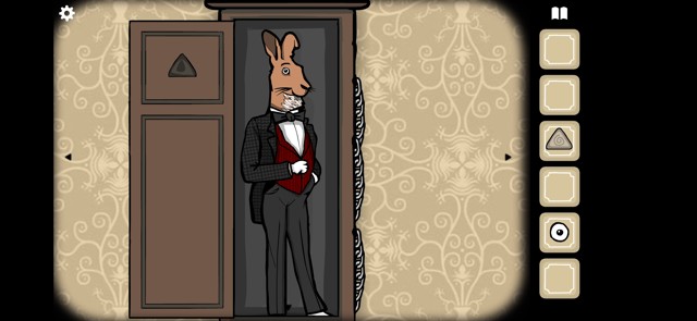 打开柜子,这兔子什么时候跑进去的?将三角石头安在凹槽上,重新开关柜门。(一定是我打开的方式不对。)