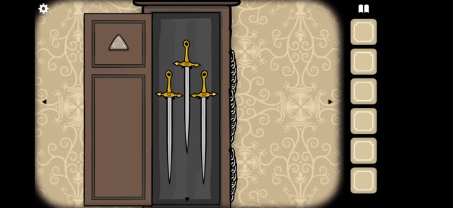根据墙上画的提示,把剑插在第一排,第四排,第五排。