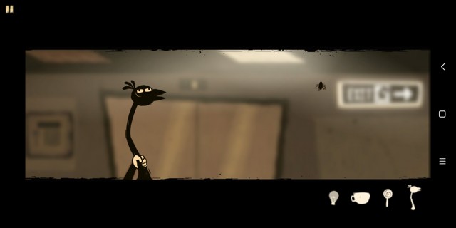 把右边房间灯上的苍蝇用鸵鸟头叨住