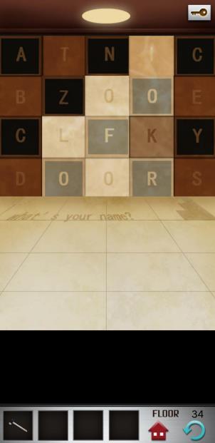 100层《100Floors》第34关怎么过图解 电梯门及旁边的墙壁上分散着许多字母,直接输入游戏的名称“100Floors”即可过关,电梯门就会自动打开了。 老友网www.andlaou.com免费为你分享