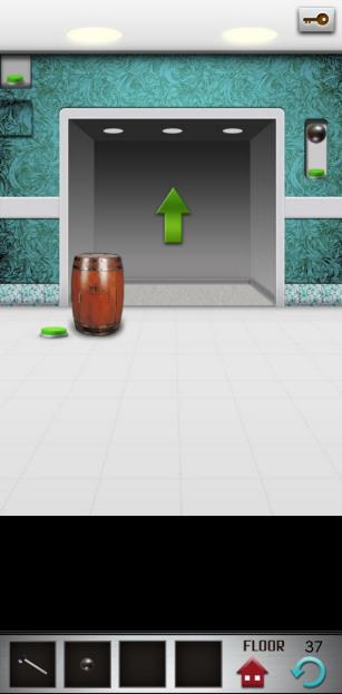 电梯门上有三盏灯,解开一个机关会亮起一盏灯,三盏灯全亮的话电梯门就自动打开了。点击左上角的可滑动木板打开暗格,点击拾取里面的小钢珠解开第一个机关。移开电梯门前的桶,解开第二个机关。将手机倒置,使右侧的小钢珠离开按钮解开第三个机关。 点击绿色箭头进入下一层。
